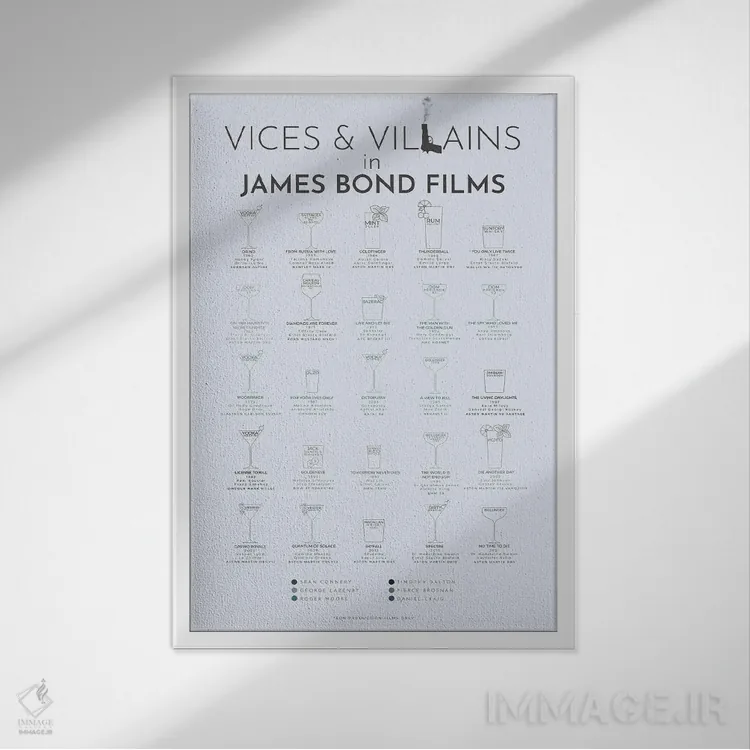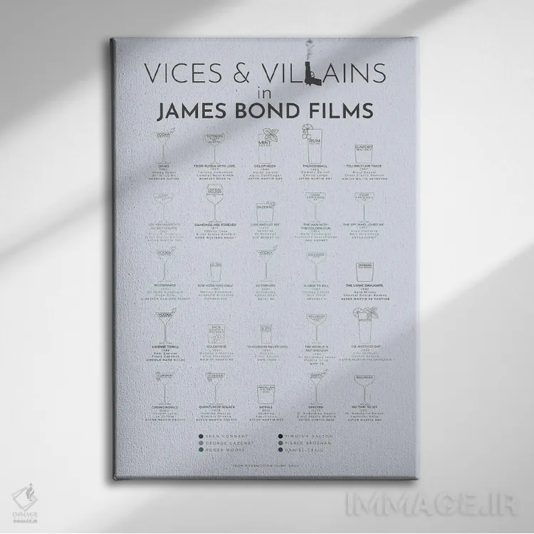 تابلو شرارت‌ها و شرورها در فیلم‌های جیمز باند اثر بیبلیوتوگرافی - نمای قاب‌دار مشکی