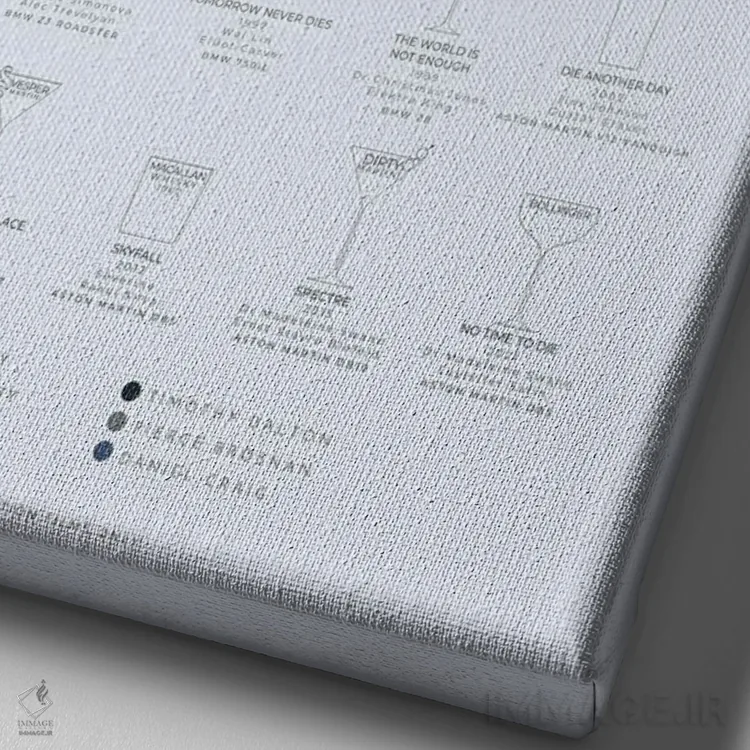 تابلو شرارت‌ها و شرورها در فیلم‌های جیمز باند اثر بیبلیوتوگرافی - نمای نزدیک بافت بوم