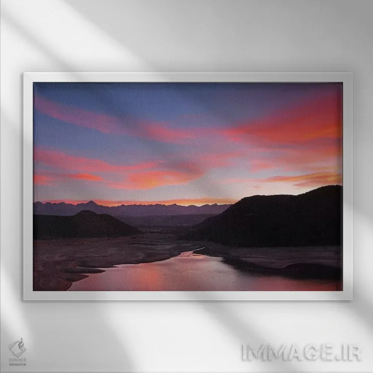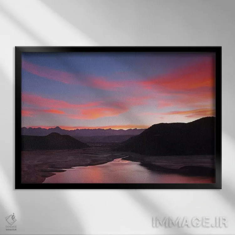این تابلو با عنوان «غروب کوههای سنخوان» اثرِ «برایان ولف» جلوهٔ دیوار را منسجمتر میکند؛ برای دیوارهای گالریوار و ترکیب چند اثر پیشنهاد میشود. اگر دنبال زیباییِ بیادعا هستید، این اثر درست مینشیند.