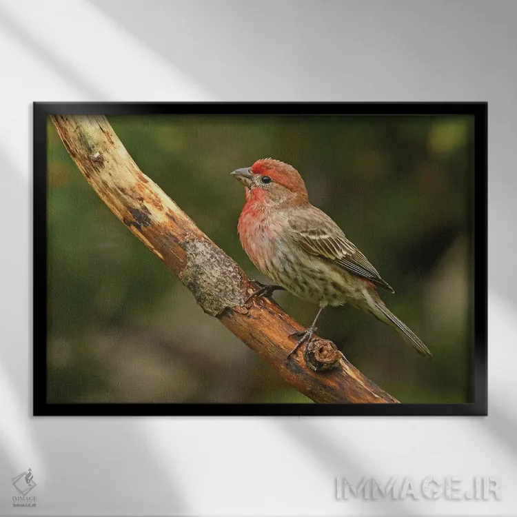 تابلو سهره خانگی نر نشسته بر شاخه اثر برایان ولف - نمای قاب‌دار مشکی