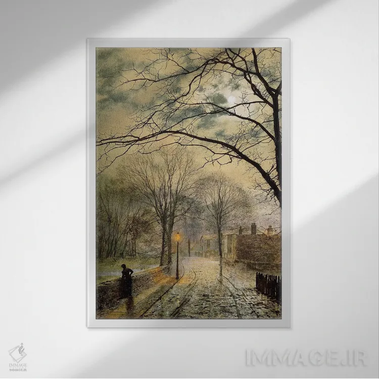 «Bonchurch، Isle of Wight، 1878، قدمزنی در مهتاب، بانچرچ، جزیره وایت، ۱۸۷۸» اثرِ «جان اتکینسون گریمشا» یک انتخاب کلاسیک و مرتب است؛ موضوعِ این اثر در آن برای دکورهای لوکس و چوبی عالی مینشیند.