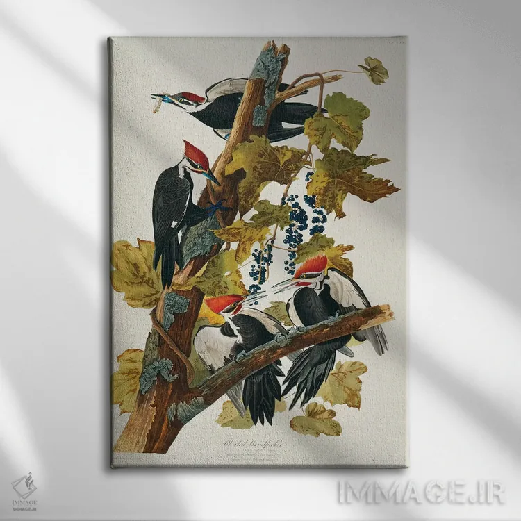 «Birds Of America)، دارکوب کلهسرخ (لوح ۱۱۱، پرندگان آمریکا)» اثرِ «جان جیمز آدوبون (نقاش و پرندهشناس)» از آن کارهاییست که بافت و جزئیات را طوری نشان میدهد که نگاه میماند؛ برای نشیمنهای خانوادگی انتخاب خوبیست. هم فضا را گرم میکند، هم شلوغش نمیکند.