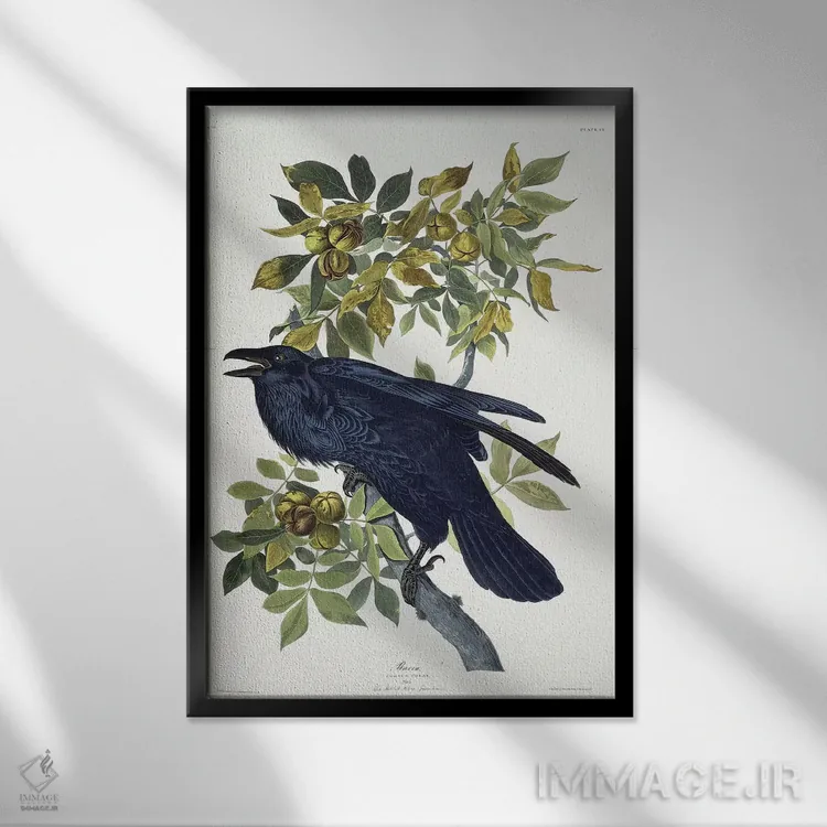 این اثر با عنوان «کلاغ» اثرِ «جان جیمز آدوبون (نقاش و پرندهشناس)» گرما و شخصیت به فضا اضافه میکند؛ برای هدیهدادن به دوستداران حیوانات انتخابی خوشسلیقه است. به دیوار، قصه میدهد—اما قصهای آرام و شیک.
