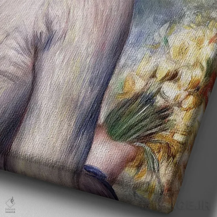 تابلو کلاسیک دختر جوانی که دسته گل لاله در دست دارد اثر پیر-اوگوست رنوار