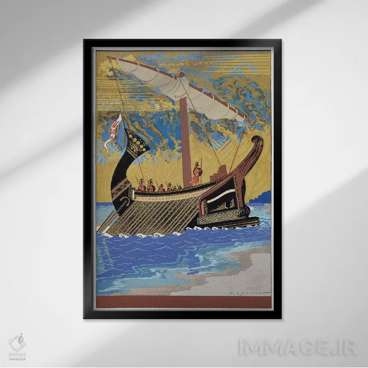 «کشتی اودیسئوس (تصویرسازی از اودیسه هومر)، ۱۹۳۰—۱۹۳۳» اثرِ «فرانسوا—لویی اشمید (هنرمند فرانسوی)» یک انتخاب کلاسیک و مرتب است؛ موضوعِ این اثر در آن برای دکورهای لوکس و چوبی عالی مینشیند.