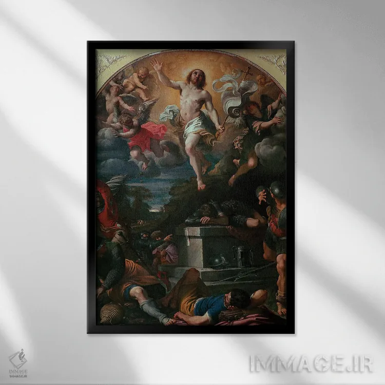 این اثرِ «آنیبال کاراچی (نقاش ایتالیایی)» در لحن کلاسیک، وقار بصری دارد؛ موضوعِ این اثر هم برای دیوارِ شاخص و نورپردازی گرم بسیار مناسب است.