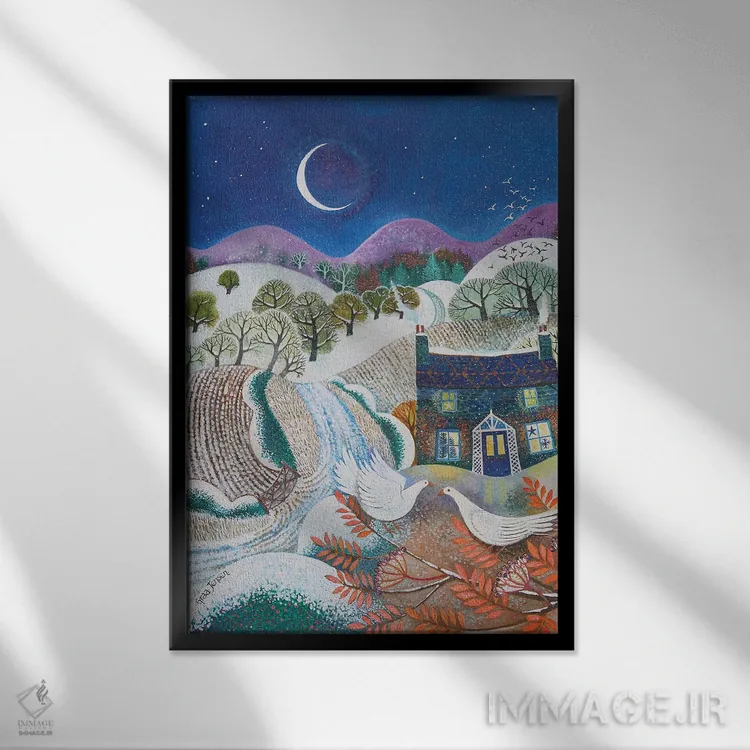 تابلو پرندگان برفی، ۲۰۱۸ اثر لیزا گرا یِنسن - نمای قاب‌دار مشکی