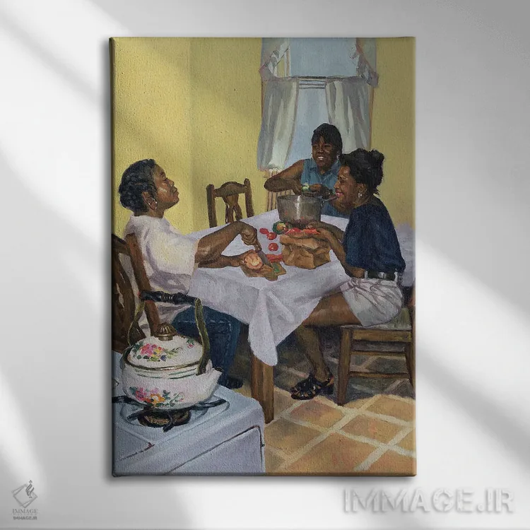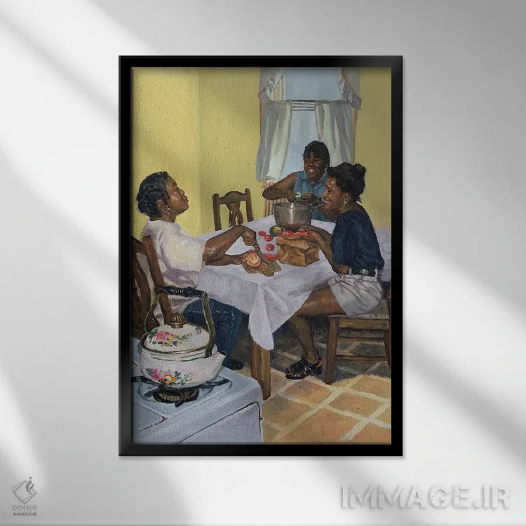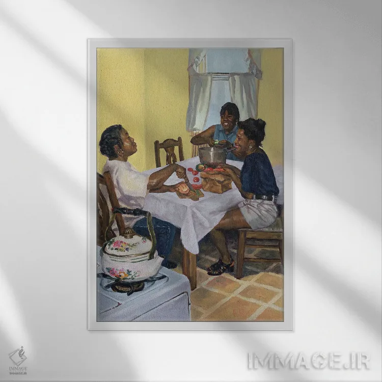 تابلو گفت‌وگوی پخته و چاشنی‌دار، ۱۹۹۸ اثر کالین بوتمن - نمای قاب‌دار مشکی