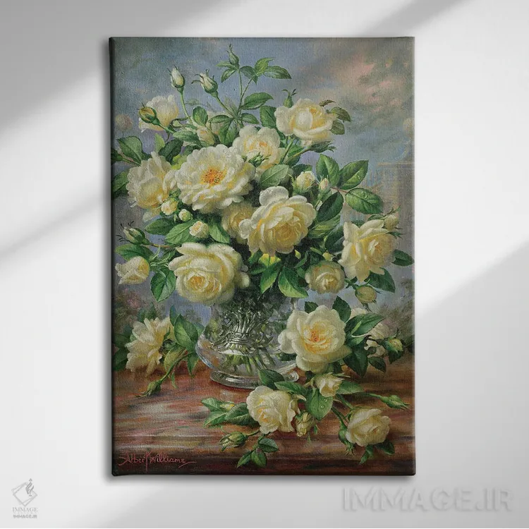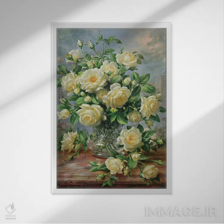 این اثر با عنوان «گلهای رز پرنسس دایانا در گلدان شیشهای تراشخورده» اثرِ «آلبرت ویلیامز» حس فصل را آرام وارد فضا میکند؛ برای فضای غذاخوری انتخابی خوشسلیقه است. با قاب روشن یا چوبی، حس طبیعیتری پیدا میکند.