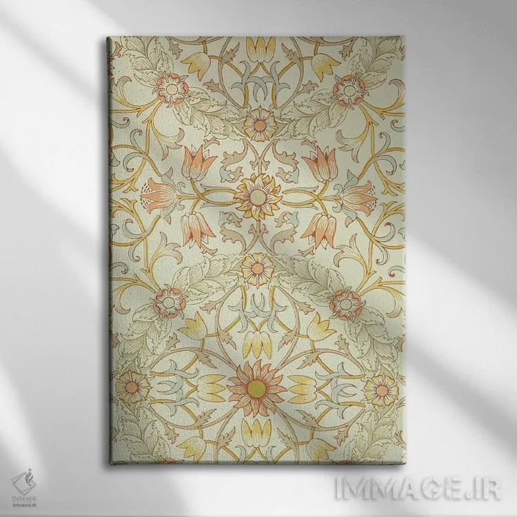 «طرح گل لیلیوم احاطهشده با گل رز» اثرِ «ویلیام موریس (طراح و هنرمند بریتانیایی)» میتواند جزئیات نزدیک را چشمنواز نشان بدهد؛ برای کنار میز آرایش یا کنسول پیشنهاد میشود. جزئیاتش از نزدیک هم ارزش تماشا دارد.