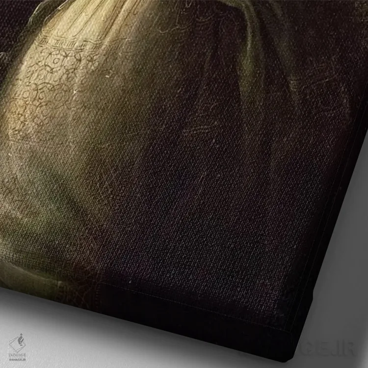 تابلو جزئیات فرشته از "مریم صخره‌ها" اثر لئوناردو داوینچی (نقاش و مخترع ایتالیایی) - نمای نزدیک بافت بوم