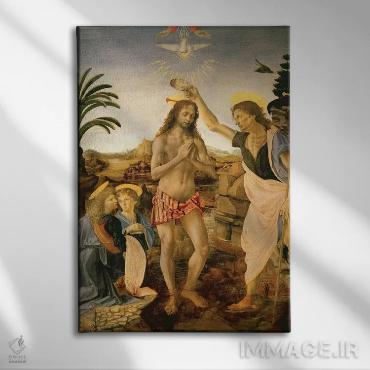 «غسل تعمید حضرت مسیح به دست یحیی تعمیددهنده، حدود ۱۴۷۵» اثرِ «آندریا دل وروکّیو (مجسمهساز و نقاش ایتالیایی)» یک انتخاب کلاسیک و مرتب است؛ موضوعِ این اثر در آن برای دکورهای لوکس و چوبی عالی مینشیند.