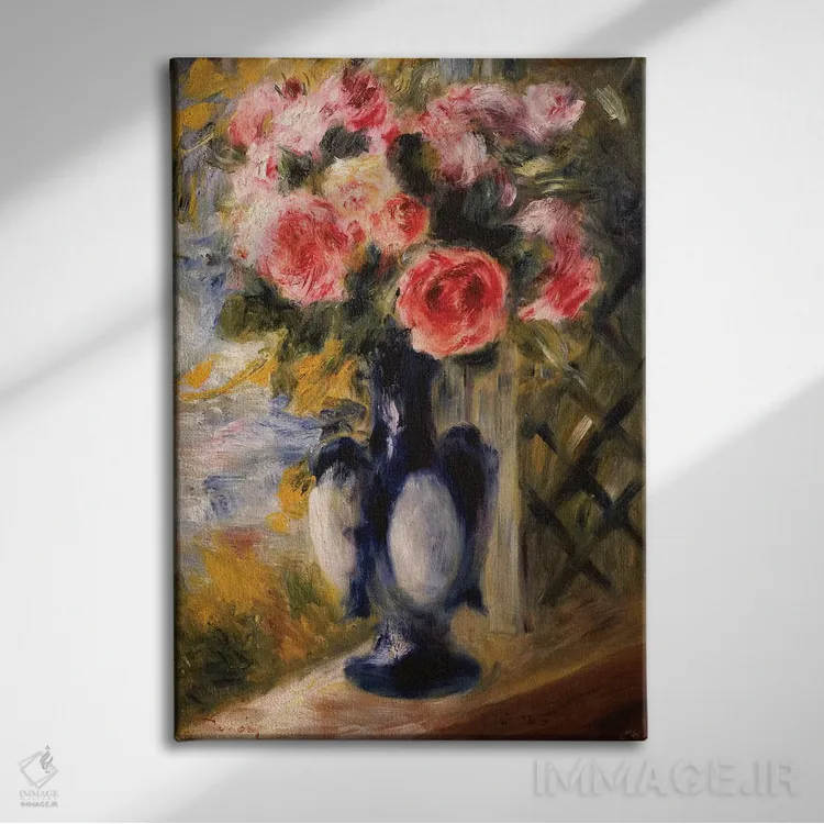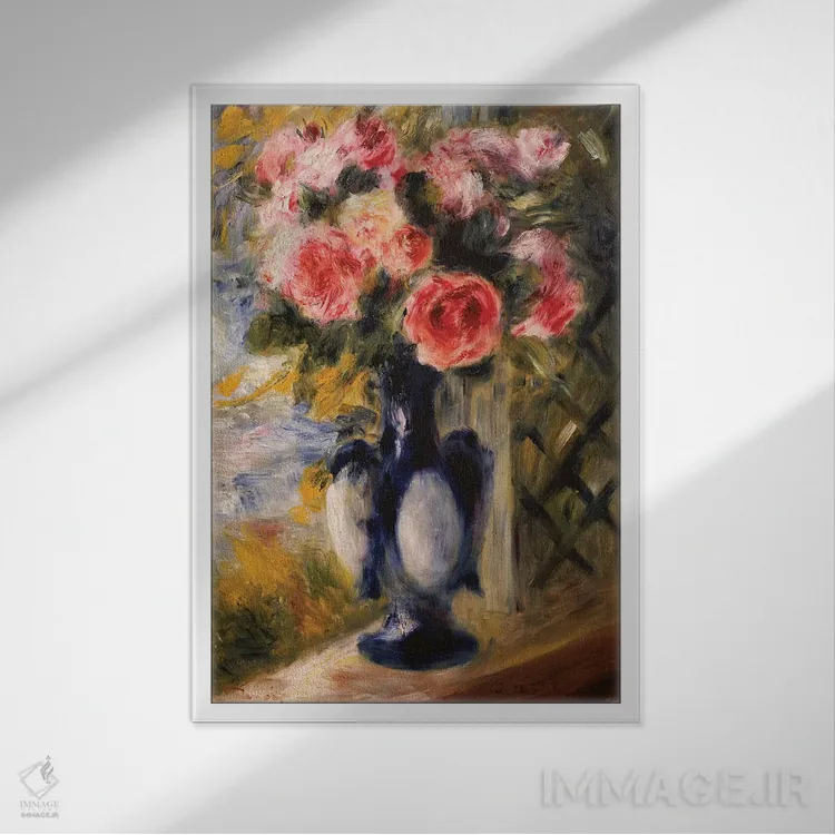 تابلو کلاسیک رزها در گلدان آبی، ۱۸۹۲ اثر پیر-اوگوست رنوار