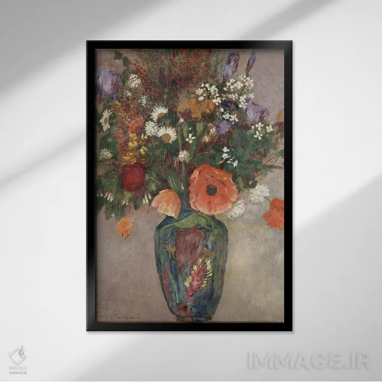 «دستهگل در گلدان» اثرِ «اودیلو ردون» میتواند تعادل رنگیِ لطیفی به چیدمان بدهد؛ برای اتاق خواب پیشنهاد میشود. فضا را شلوغ نکند؛ فقط لطیفترش میکند.