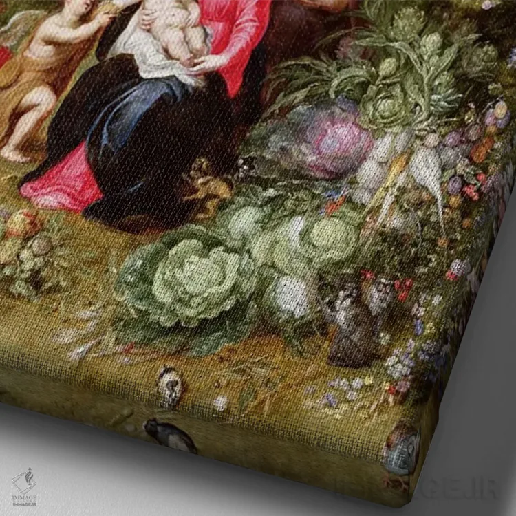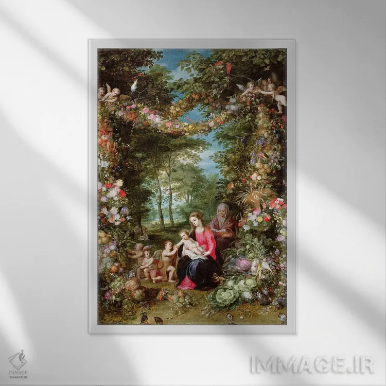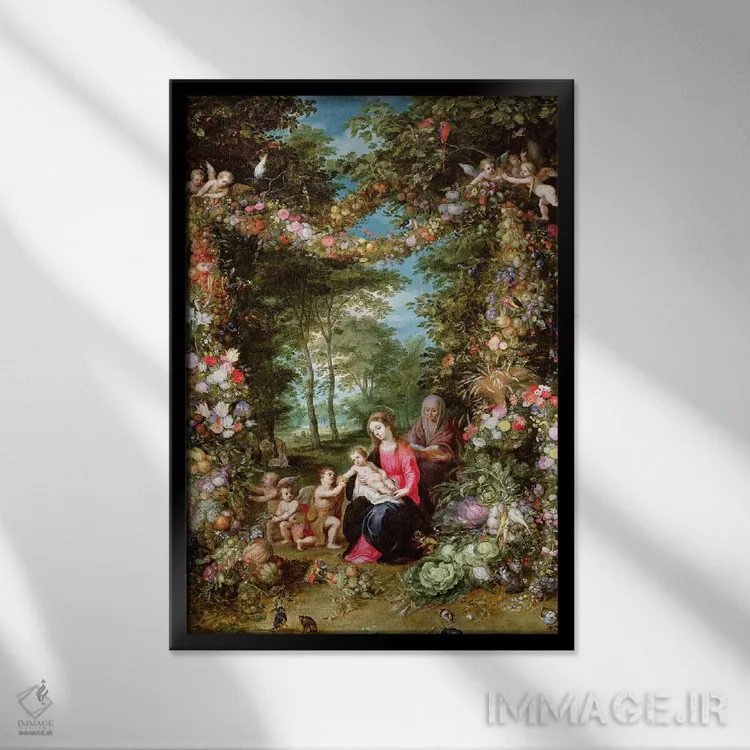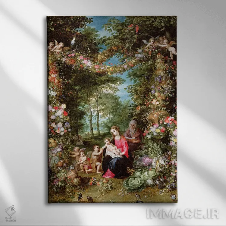 این اثرِ «یان بروگل» در لحن کلاسیک، وقار بصری دارد؛ موضوعِ این اثر هم برای دیوارِ شاخص و نورپردازی گرم بسیار مناسب است.