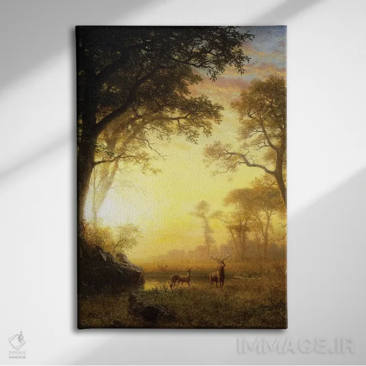 برای اتاق خواب و نشیمنهای آرام، «نور در جنگل» اثرِ «آلبرت بیرشتات (نقاش منظره آمریکایی)» در کنار چوب و پارچههای روشن، عالی مینشیند؛ برای راهروهای مینیمال انتخابی خوشسلیقه است. با قاب روشن یا چوبی، حس طبیعیتری پیدا میکند.