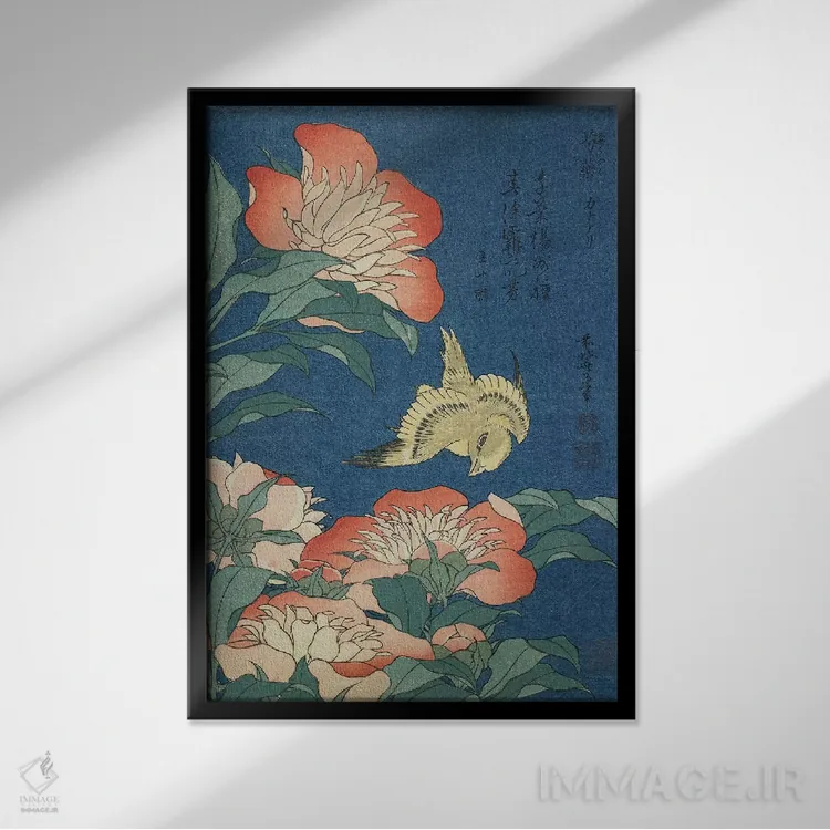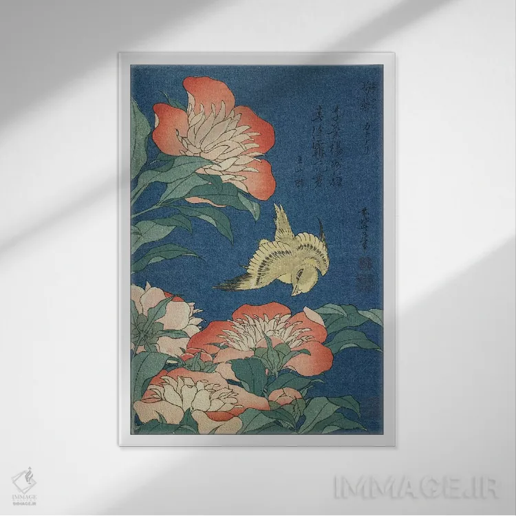 اگر دکور شما ساده و متعادل است، «گلهای صدتومانی و قناری، حدود ۱۸۳۳» اثرِ «کاتسوشیکا هوکوسای (نقاش و هنرمند ژاپنی)» با موضوعِ این اثر در حس آسیایی گزینهی مطمئن و هماهنگپذیری است.