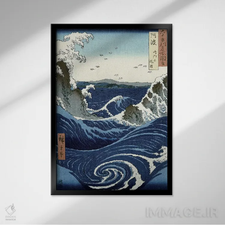 «نمای گردابهای نارو تو در آوا (ژاپن)» اثرِ «کاتسوشیکا هوکوسای (نقاش و هنرمند ژاپنی)» با حالوهوای هنر فاخر کلاسیک و موضوعِ این اثر، برای پذیراییهای رسمی و دکورهای کلاسیک انتخابی شایسته است.