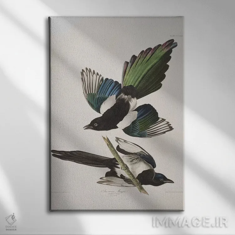 برای اتاقی که به یک عنصر دوستداشتنی نیاز دارد، «زاغ آمریکایی» اثرِ «جان جیمز آدوبون (نقاش و پرندهشناس)» به دیوار، انرژیِ نرم و زنده میدهد؛ برای خانههایی با چوب و پارچههای گرم انتخابی خوشسلیقه است. هم فضا را گرم میکند، هم شلوغش نمیکند.