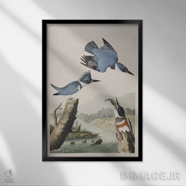 برای دکورهای صمیمی، «مرغ ماهیخوار کمربنددار» اثرِ «جان جیمز آدوبون (نقاش و پرندهشناس)» بدون کودکانه شدن، بازیگوش و خوشپرداخت میماند؛ برای فضاهای روستیک یا بوهو انتخابی خوشسلیقه است. هم فضا را گرم میکند، هم شلوغش نمیکند.