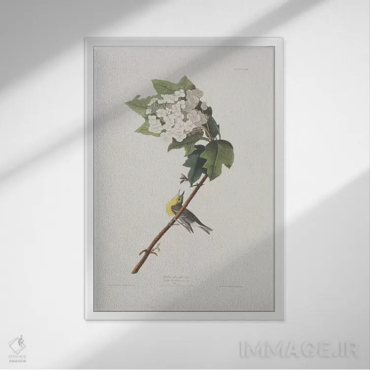 این اثر با عنوان «ویریو گلو زرد و ادریسی برگ بلوط» اثرِ «جان جیمز آدوبون (نقاش و پرندهشناس)» تعادل رنگیِ لطیفی به چیدمان میدهد؛ برای دکورهای اسکانباوراوی انتخابی خوشسلیقه است. اگر دنبال «زیباییِ بیصدا» هستید، این اثر همان حس را دارد.