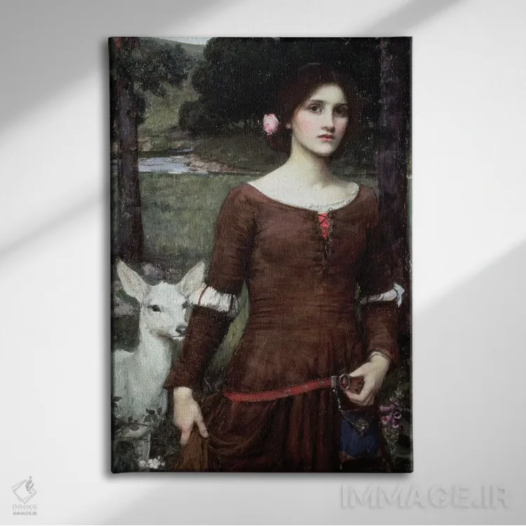 این اثرِ «جان ویلیام واترهاوس (نقاش انگلیسی سبک پره—رافائلیت)» در لحن کلاسیک، وقار بصری دارد؛ موضوعِ این اثر هم برای دیوارِ شاخص و نورپردازی گرم بسیار مناسب است.