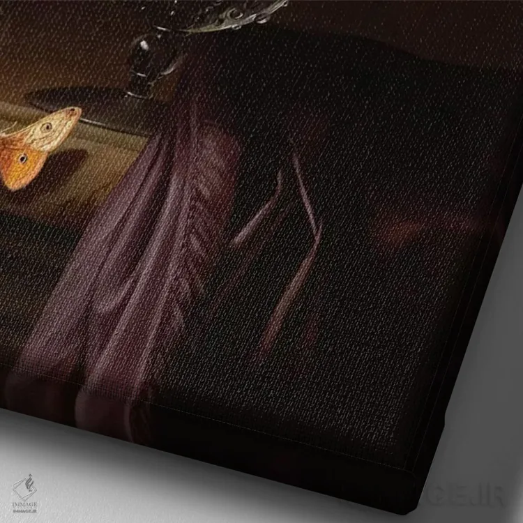 تابلو طبیعت بی‌جان گل‌ها در گلدانی روی رف اثر ریچل رویش - نمای نزدیک بافت بوم