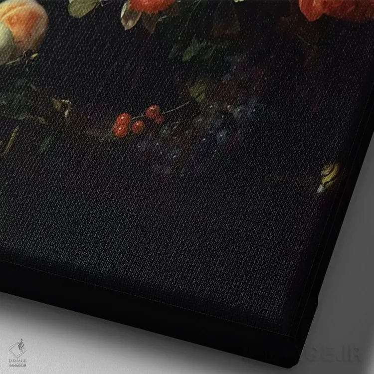 تابلو دسته‌گل گل‌ها اثر ریچل رویش - نمای نزدیک بافت بوم
