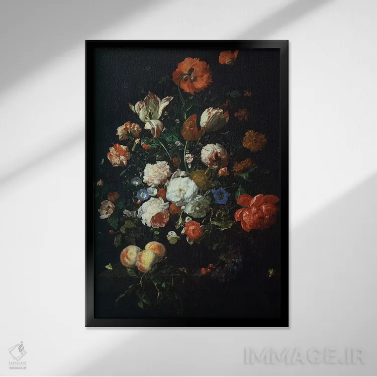 تابلو دسته‌گل گل‌ها اثر ریچل رویش - نمای قاب‌دار مشکی