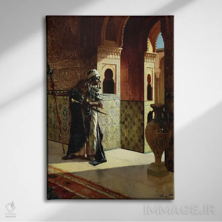 «نگهبان مور در الحمرا (اسپانیا)» اثرِ «رودلف ارنست (نقاش اتریشی)» با حالوهوای هنر فاخر کلاسیک و موضوعِ این اثر، برای پذیراییهای رسمی و دکورهای کلاسیک انتخابی شایسته است.