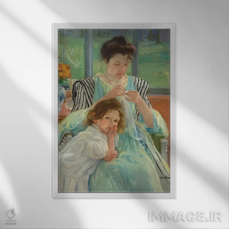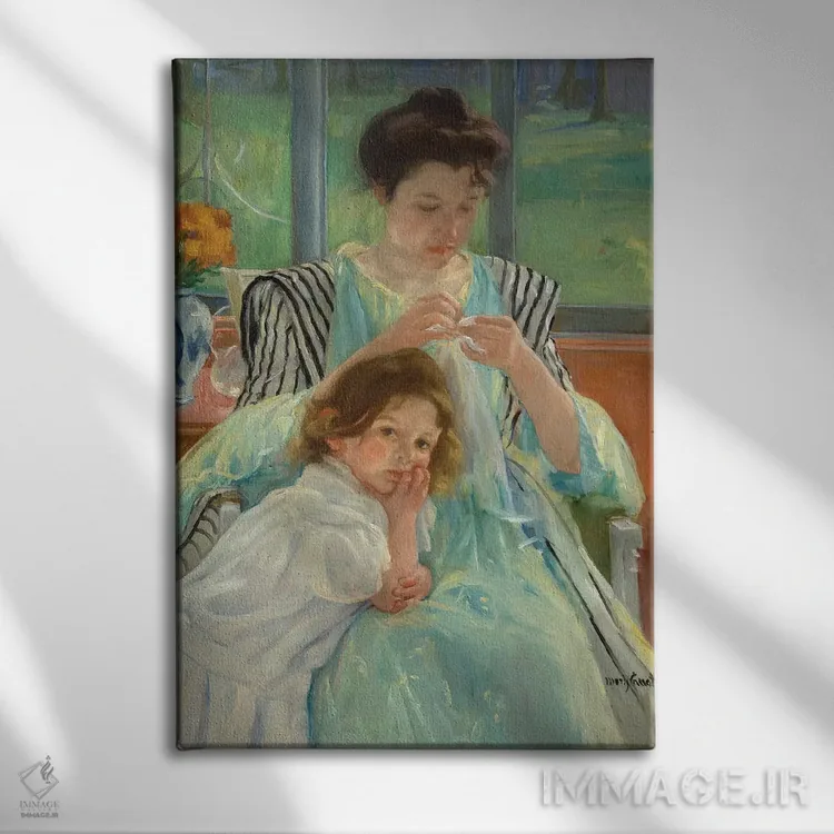تابلو مادر جوان در حال خیاطی، ۱۹۰۰ اثر مری استیونسون کاسات (نقاش آمریکایی) - نمای پرسپکتیو محصول