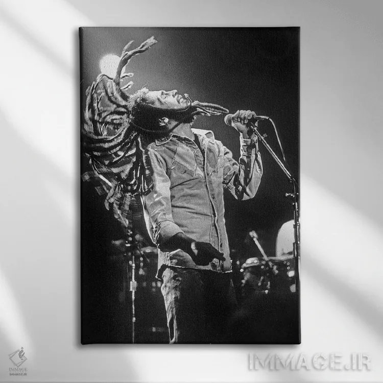 «Los Angeles on May 26، 1976، باب مارلی در کنسرت رگی در راکسی، لسآنجلس، ۲۶ مه ۱۹۷۶» اثرِ «رو دز آرشیو (آرشیو خیابان)» با بیان سیاهوسفید، کنار دیوارهای روشن و قابهای ساده بسیار خوشفرم دیده میشود؛ موضوعِ این اثر هم خوانا میماند.