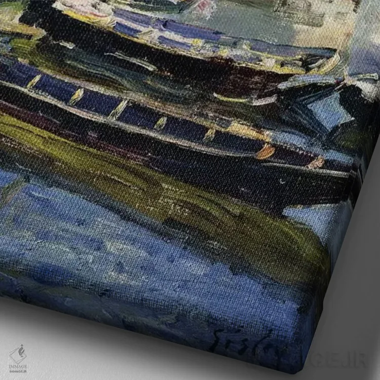 تابلو 1885,بارج‌ها، ۱۸۸۵ اثر آلفرد سیسلی (نقاش امپرسیونیست انگلیسی-فرانسوی) - نمای نزدیک بافت بوم