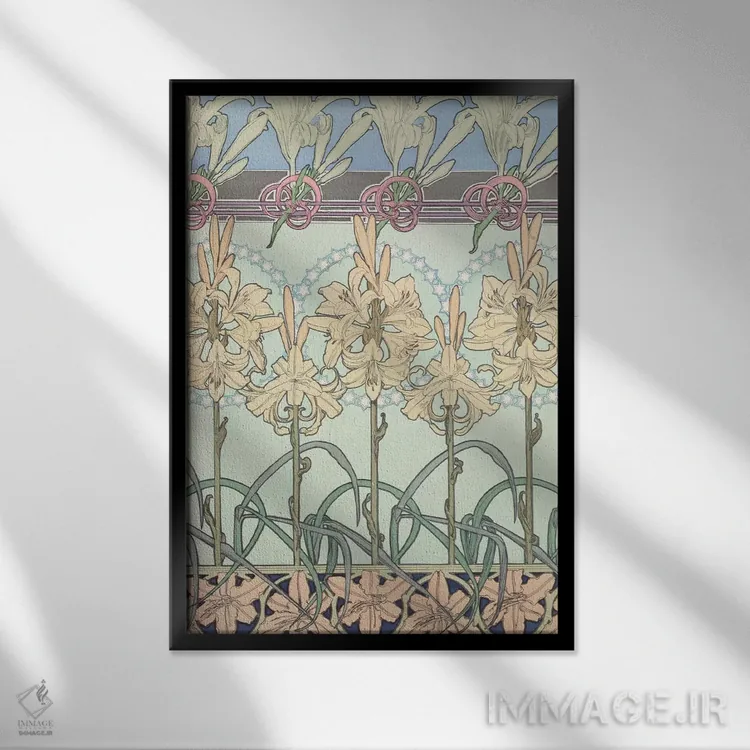 «1902، صفحه ۳۳ از "اسناد تزئینی"، ۱۹۰۲» اثرِ «آلفونس موخا (هنرمند آرت نووی چک)» میتواند جزئیات نزدیک را چشمنواز نشان بدهد؛ برای کنار میز آرایش یا کنسول پیشنهاد میشود. در کنار گیاهان آپارتمانی، هماهنگتر هم میشود.