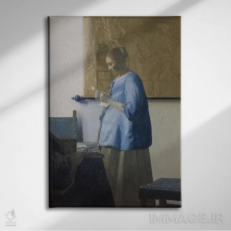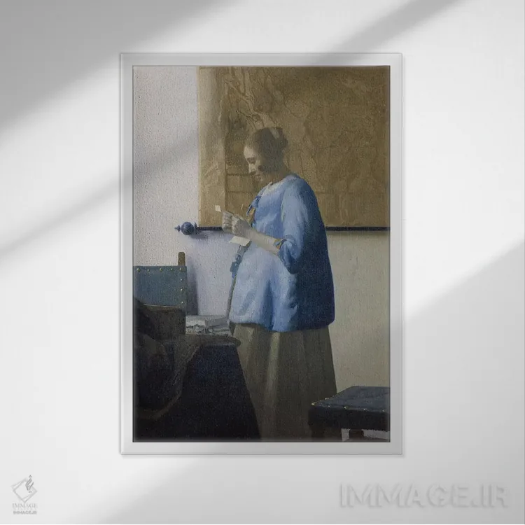 اگر به قابهای رسمی و گالریپسند علاقه داری، «c.1662—63، زن در حال خواندن نامه، حدود ۱۶۶۲—۶۳» اثرِ «یان ورمیر (نقاش هلندی)» با موضوعِ این اثر در فضای فاخر کلاسیک گزینهی مطمئنی است.