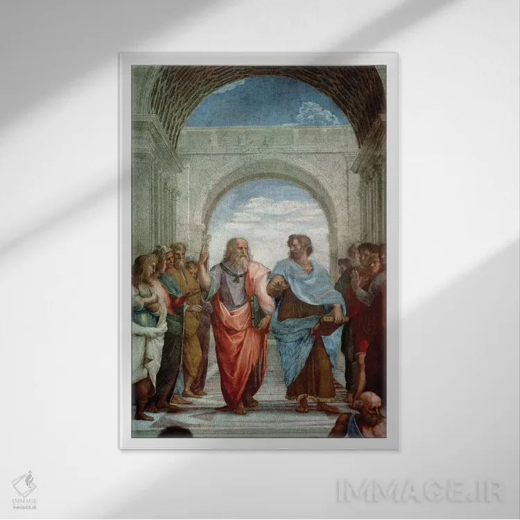 اگر به قابهای رسمی و گالریپسند علاقه داری، «1510—11، ارسطو و افلاطون: جزئیات از مدرسه آتن در اتاق امضای اسناد، ۱۵۱۰—۱۱» اثرِ «رافائل (نقاش مشهور رنسانس)» با موضوعِ این اثر در فضای فاخر کلاسیک گزینهی مطمئنی است.