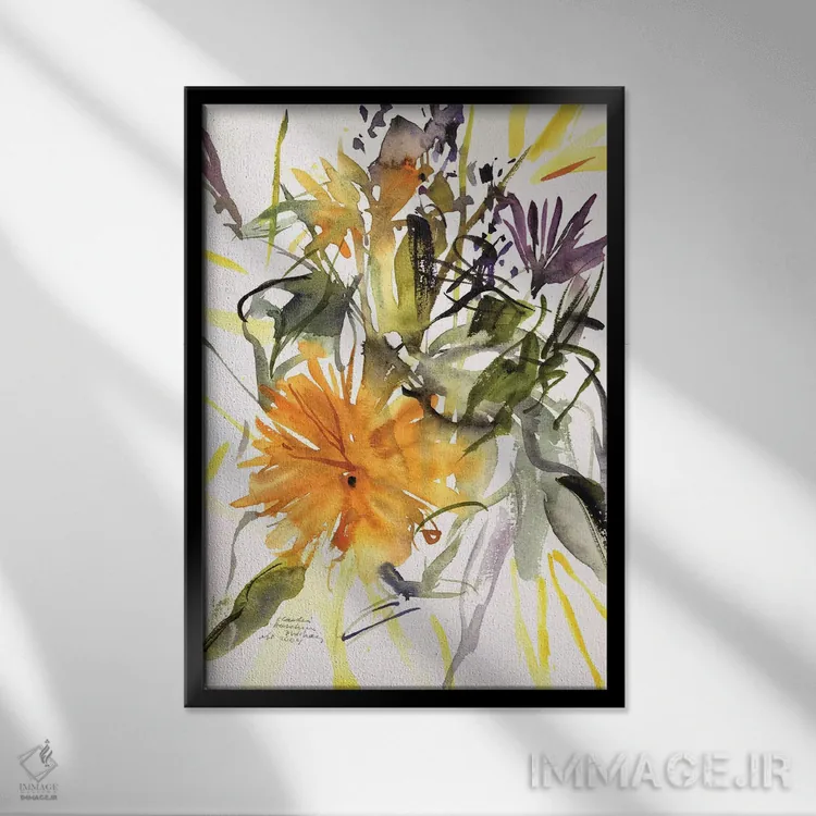 تابلو 2004,همیشه‌بهار و گل‌های دیگر، ۲۰۰۴ اثر کلودیا هاچینس-پوشاوی - نمای قاب‌دار مشکی