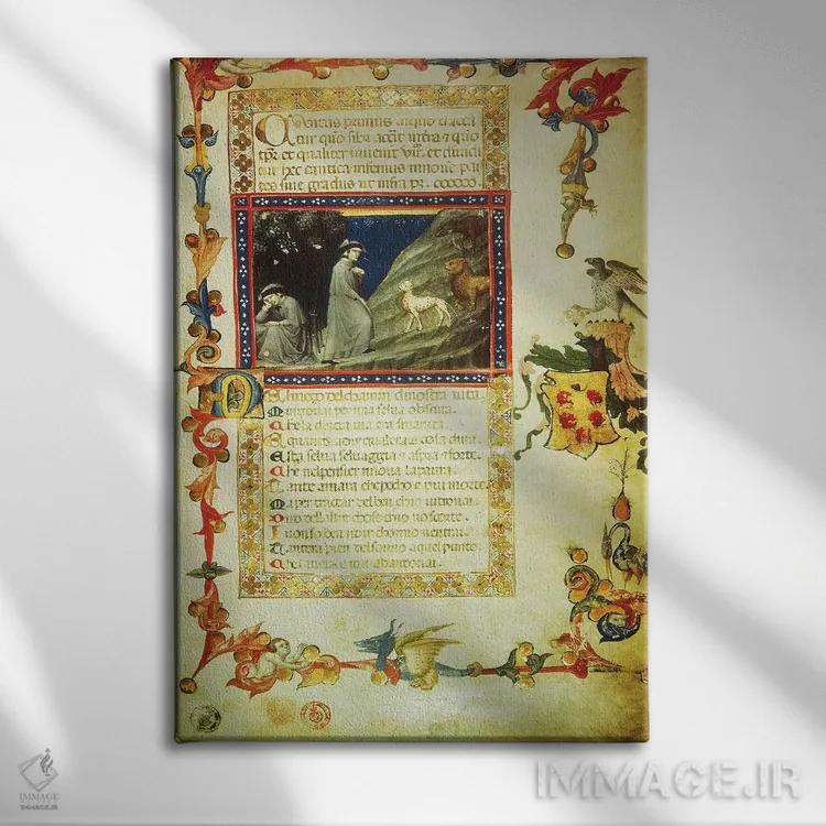 تابلو miniature from Divine Comedy, by Dante Alighieri,نخستین صفحه از اولین سرود دوزخ، نگاره از کمدی الهی، اثر دانته آلیگیری اثر دانته آلیگیری (شاعر و هنرمند ایتالیایی)