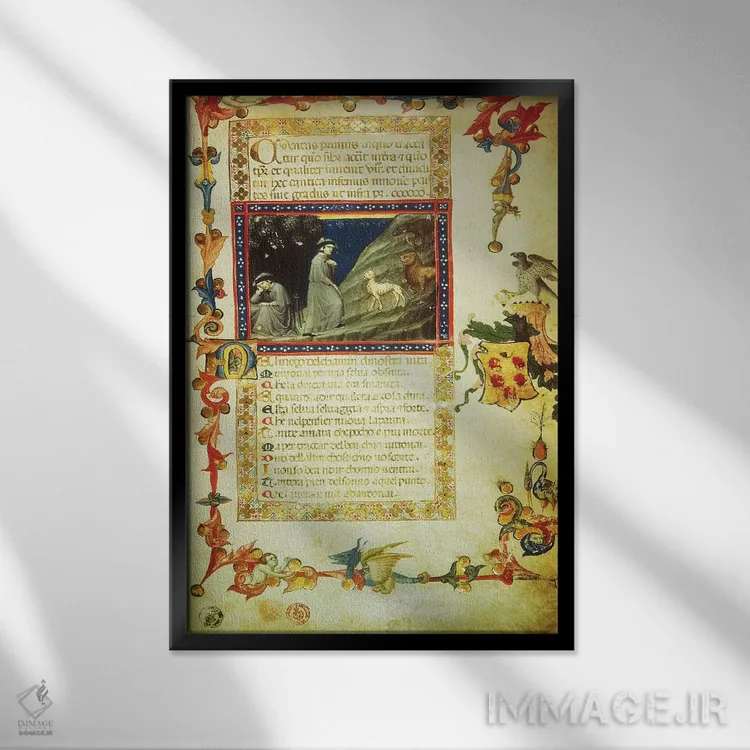 این اثرِ «دانته آلیگیری (شاعر و هنرمند ایتالیایی)» در لحن کلاسیک، وقار بصری دارد؛ موضوعِ این اثر هم برای دیوارِ شاخص و نورپردازی گرم بسیار مناسب است.