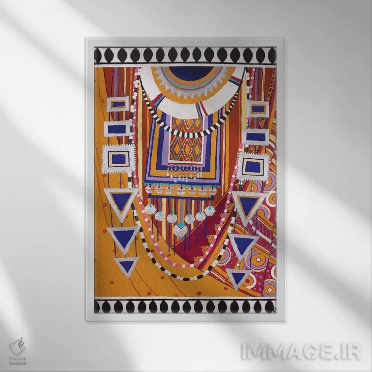 براساس پالت ترکیبی اثر، قاب تیک گرم (چوبی) پیشنهاد اول است و مشکی مات (فریم متوسط) مکمل. برای سفارشهای پروژهای با ابعاد و قابهای اختصاصی با ایماژ در تماس باشید.