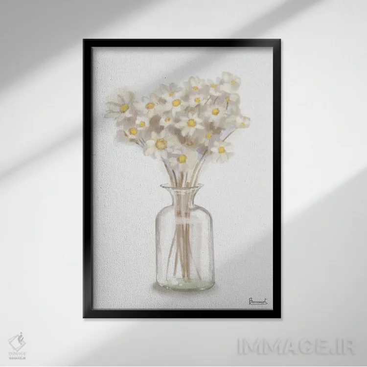 تابلو گل زرد خشک‌شده ۱ اثر باناروت - نمای قاب‌دار سفید