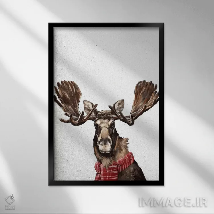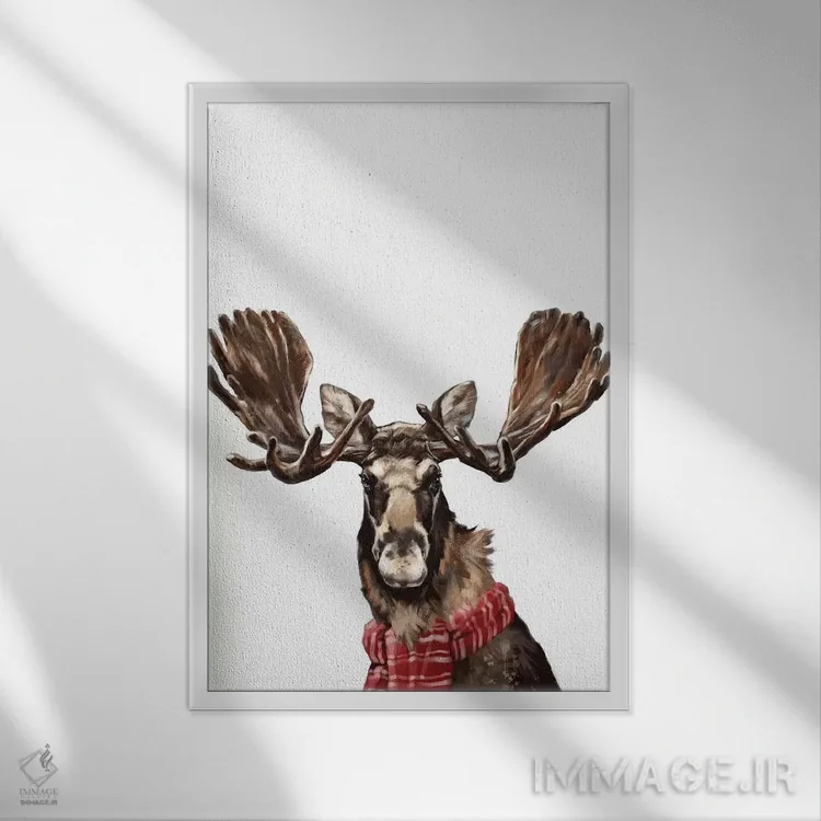 در «گوزن شمالی کریسمسی» اثرِ «بگ نوز ورک (استودیو)»، حضور حیوانات در کنار رنگهای خنثی، تضاد دلچسبی میسازد؛ برای هدیهدادن به دوستداران حیوانات انتخابی خوشسلیقه است. با قاب چوبی یا مشکی، حس مرتبتری پیدا میکند.
