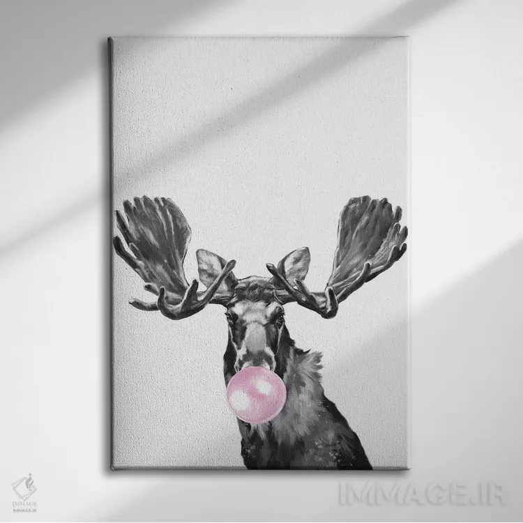 تابلو دکوراتیو گوزن شمالی با آدامس بادکنکی اثر بگ نوز ورک