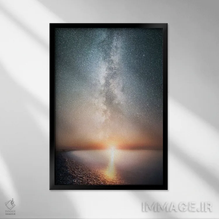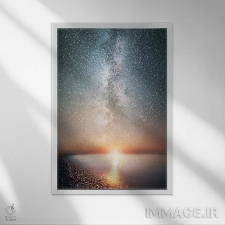 براساس پالت گرم اثر، قاب بلوط روشن (چوبی) پیشنهاد اول است و استخوانی ملایم مکمل. برای سفارشهای پروژهای با ابعاد و قابهای اختصاصی با ایماژ در تماس باشید.
