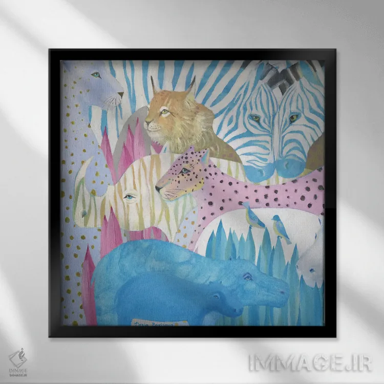 براساس پالت ترکیبی اثر، قاب تیک گرم (چوبی) پیشنهاد اول است و مشکی مات (فریم متوسط) مکمل. برای سفارشهای پروژهای با ابعاد و قابهای اختصاصی با ایماژ در تماس باشید.