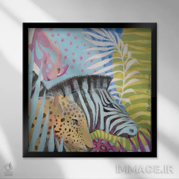 تابلو دنیای جنگل اثر داریا بوریسووا - نمای قاب‌دار مشکی