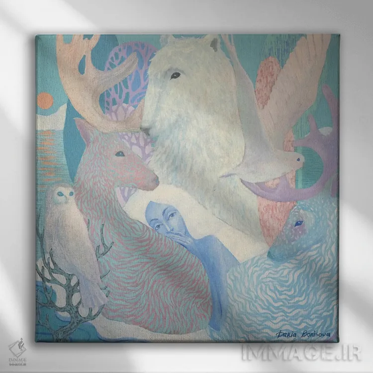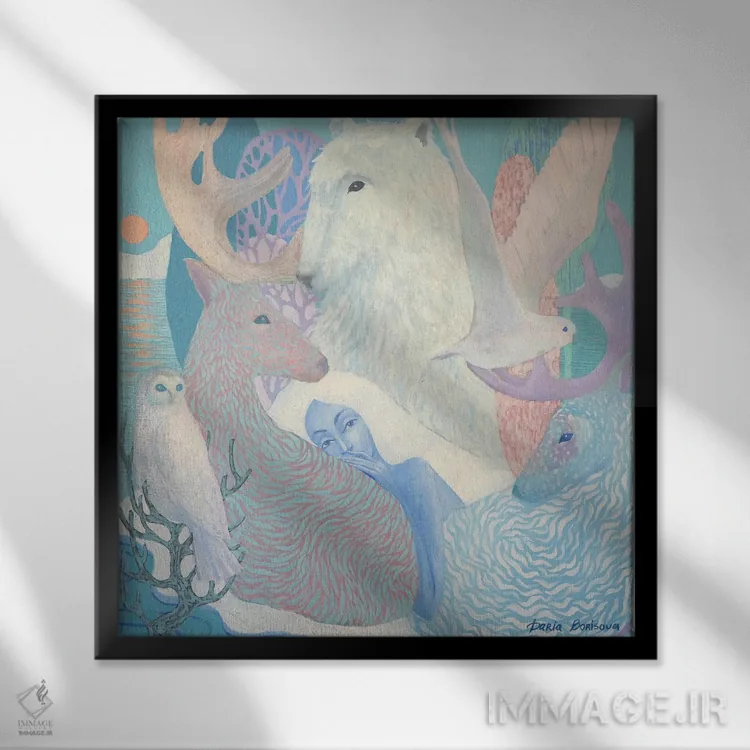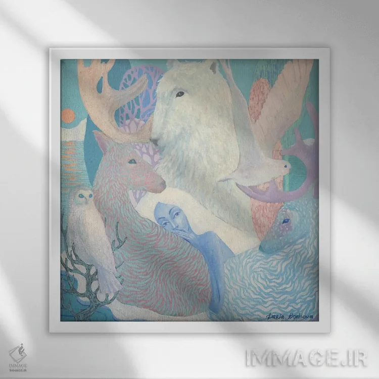 در «خانواده قطبی» اثرِ «داریا بوریسووا»، حضور حیوانات برای دکورهای مینیمال، یک نقطهٔ توجه میسازد؛ برای هدیهدادن به دوستداران حیوانات انتخابی خوشسلیقه است. به دیوار، قصه میدهد—اما قصهای آرام و شیک.
