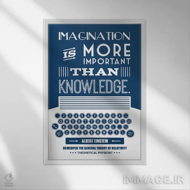 این تابلو تزئینی با موضوعِ این اثر برای هدیه و دکورهای روشن همیشه جواب میدهد: «تخیل مهمتر از دانش است» اثرِ «پرینتهای بنتون پارک (استودیو/گالری هنری)».