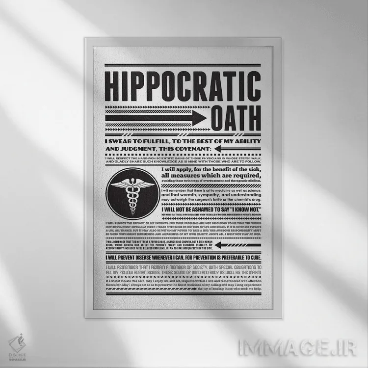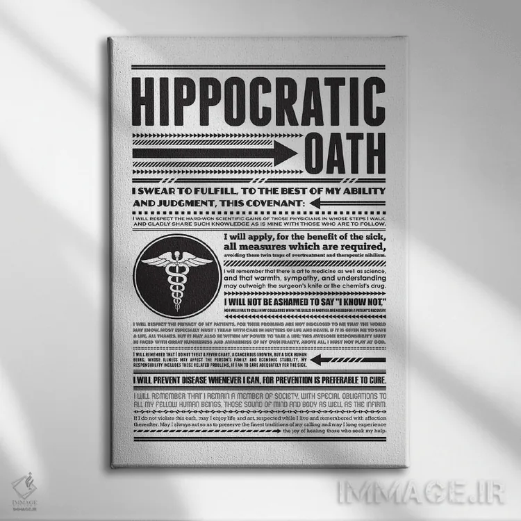 «سوگند بقراط» اثرِ «پرینتهای بنتون پارک (استودیو/گالری هنری)» با حالوهوای هنر دیجیتال سیاهوسفید، برای فضاهای مدرن و مینیمال انتخابی دقیق و امروزی است.