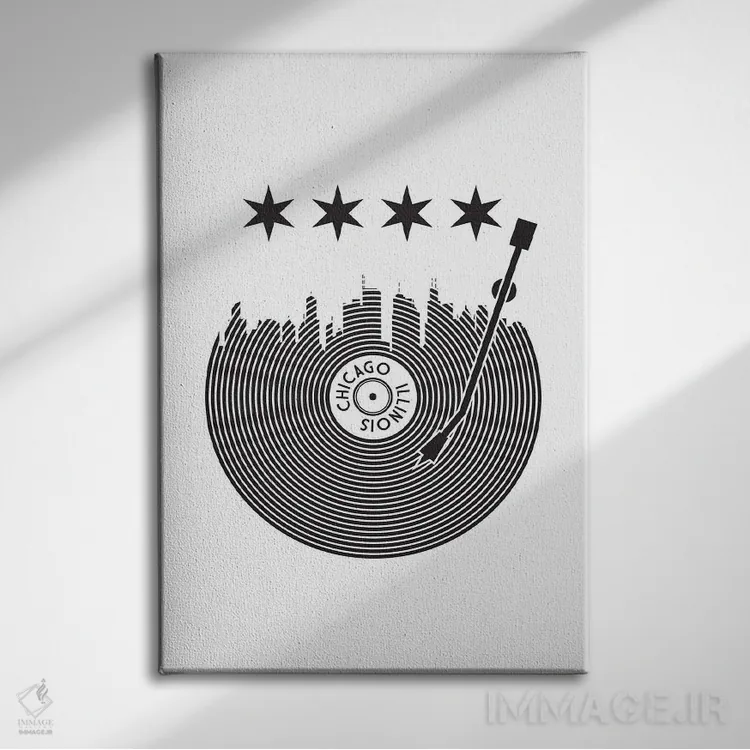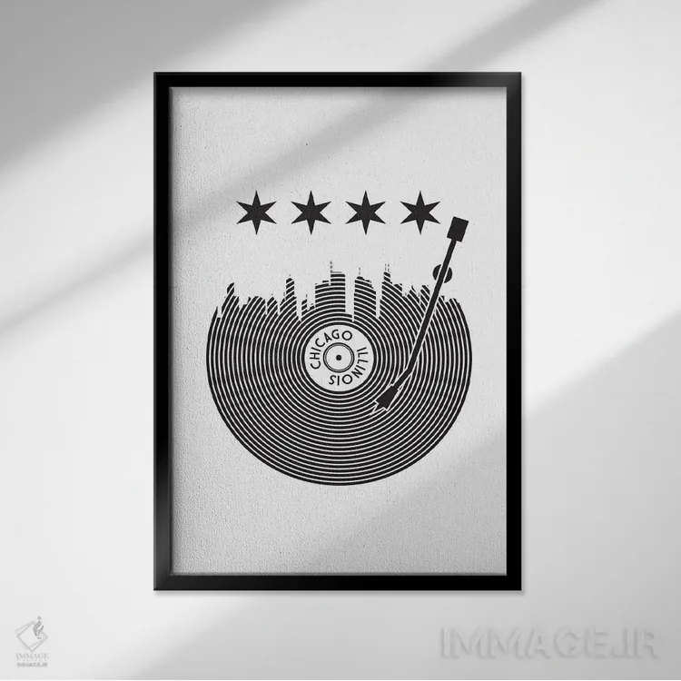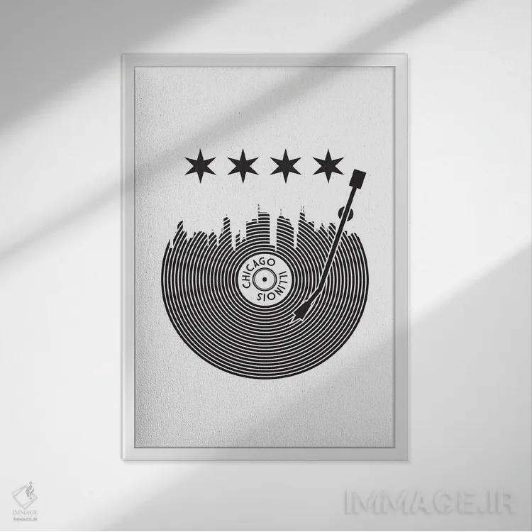تابلو مینیمال خط افق شیکاگو با صفحه گرامافون اثر پرینت های بنتون پارک
